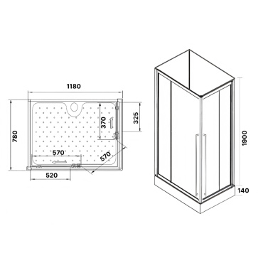 Душевая кабина Loranto 1180x780x2040 без крыши, левосторонняя, белое заднее стекло, поддон 14 см, прозрачное стекло 4 мм, профиль черный (CS-3008TM/W-120L)