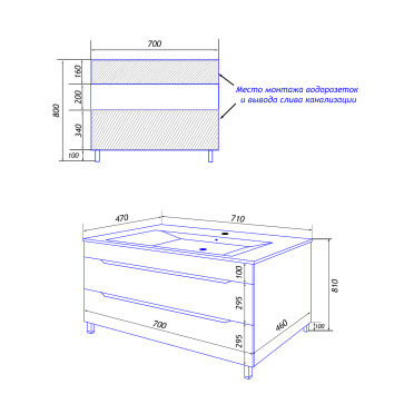 Комплект Тумба Loranto Florena 70 710х470х810 напольная, с раковиной Azario Leon, светлый бетон (CS00086991)