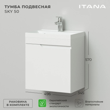Комплект тумба Итана Sky 50 493х343х570 подвесная, с раковиной Clarissa 50, белый глянец (CS00091823)