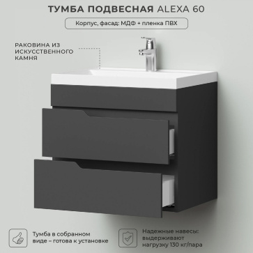 Комплект тумба Итана Alexa 60 (600х450х560) подвесная, с раковиной Clarissa 60, графит (CS00093214)