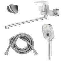Смеситель для ванны Azario Conda керамический картридж, длинный излив, с ручным душем, шланг 150 см, сатин (AZ-K1711B)