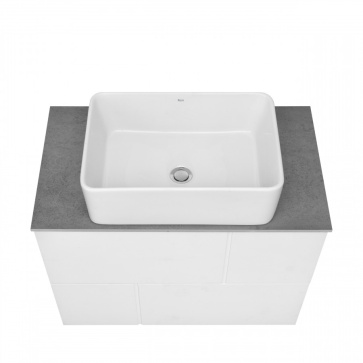 Комплект: Тумба под раковину Roca Pilar 80 подвесная, 2 ящика + Столешница Roca Pilar 80, керамогранит, серая + раковина накладная MILA, белый (Z.RU93.1.044.8)