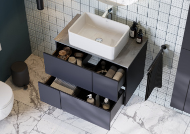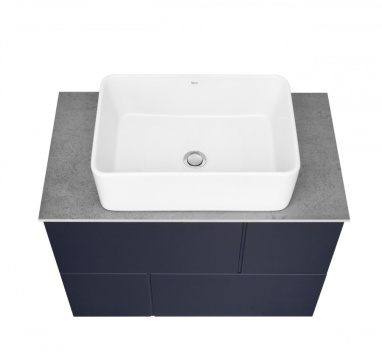 Комплект: Тумба под раковину Roca Pilar 80 подвесная, 2 ящика + Столешница Roca Pilar 80, керамогранит, серая + раковина накладная MILA, синий (Z.RU93.1.044.9)